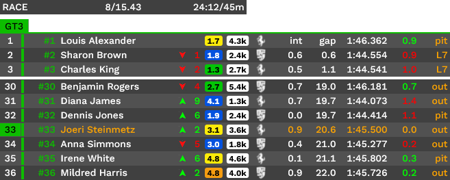The relative overlay is used to see which drivers are around you. After completing a lap, iOverlay employs its precise relative time calculation. Just like with the standings overlay, you have the same customizable options available in the relative overlay. Additionally, you can customize header and footer values within the relative overlay.